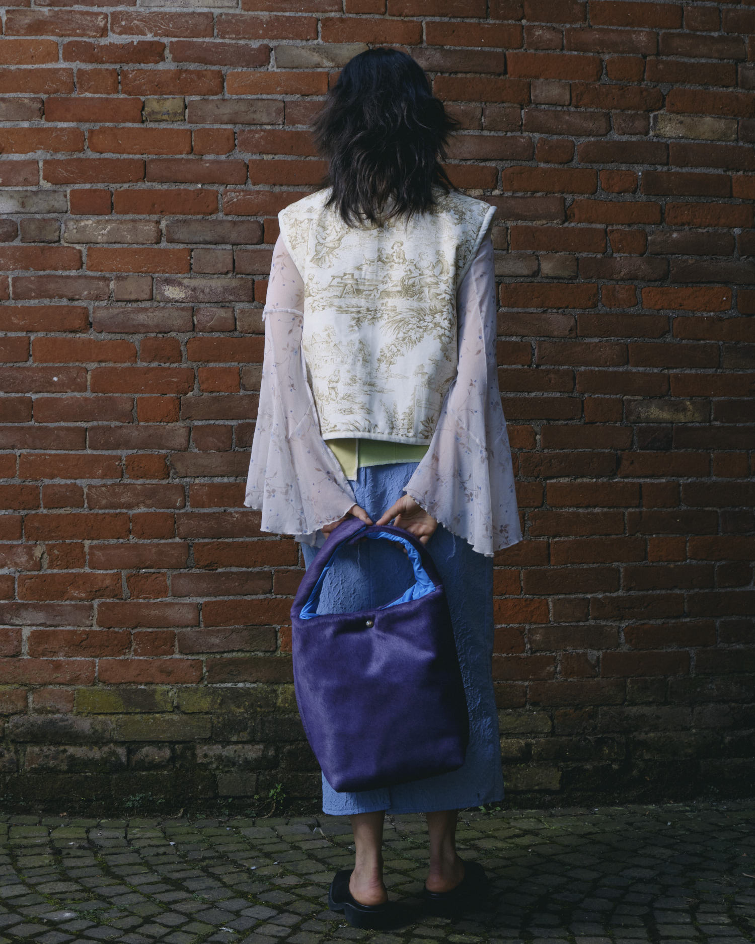 Nylon shoulder bag. Metal buttons.