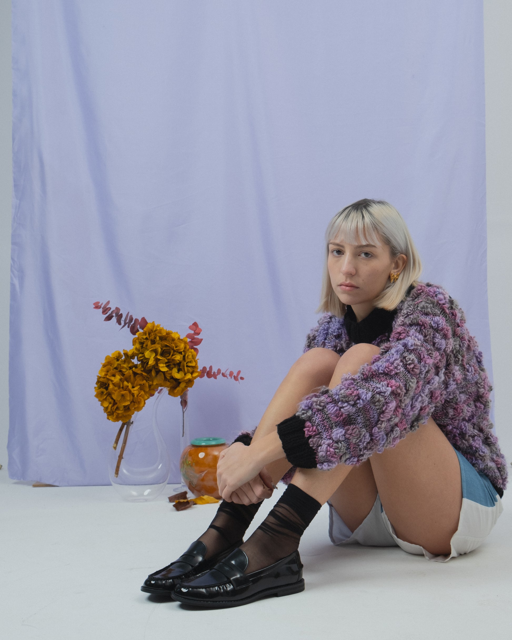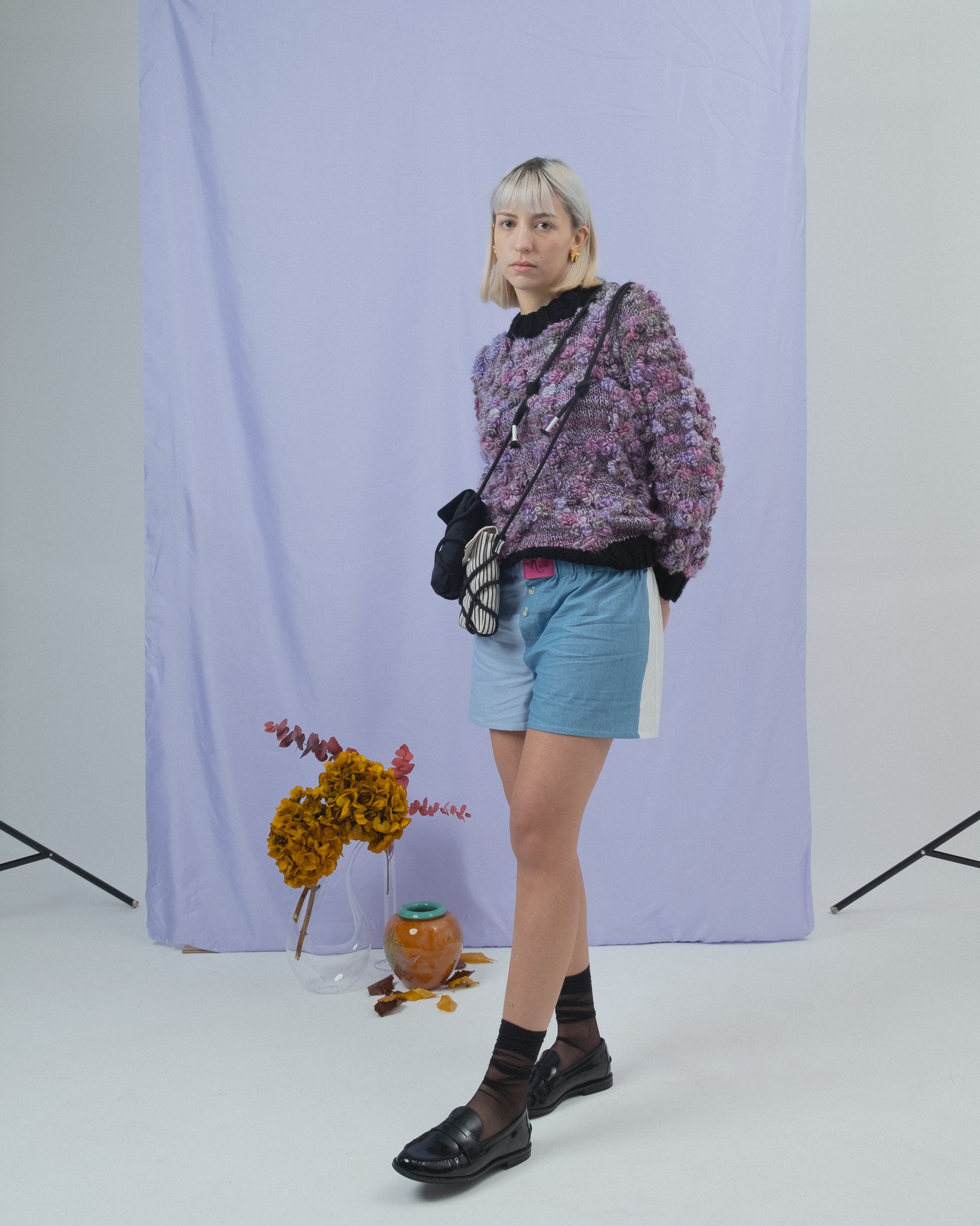 Sweater sewn with knitting technique. In warm, ultra-soft acrylic yarn, specially selected to be worn by people intolerant to wool and vegans. We recommend hand washing, lay flat and do not iron.