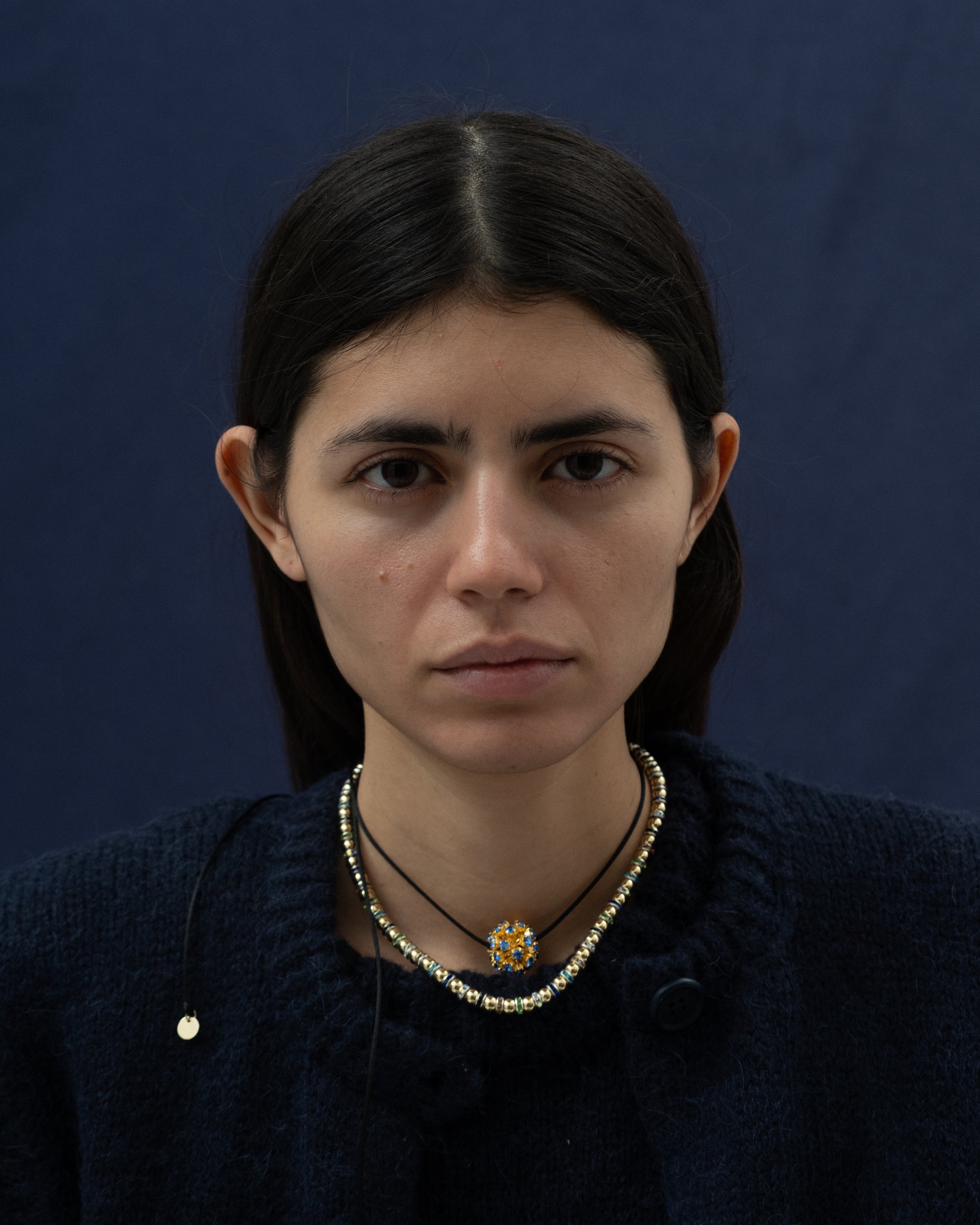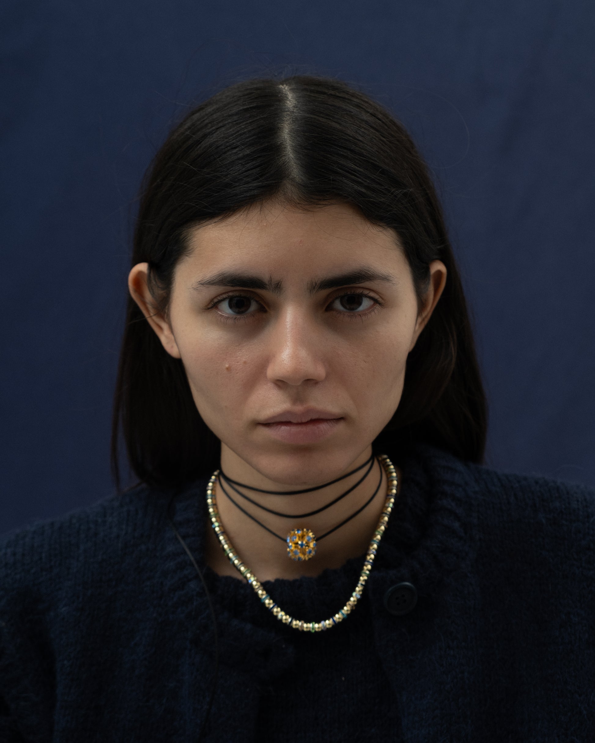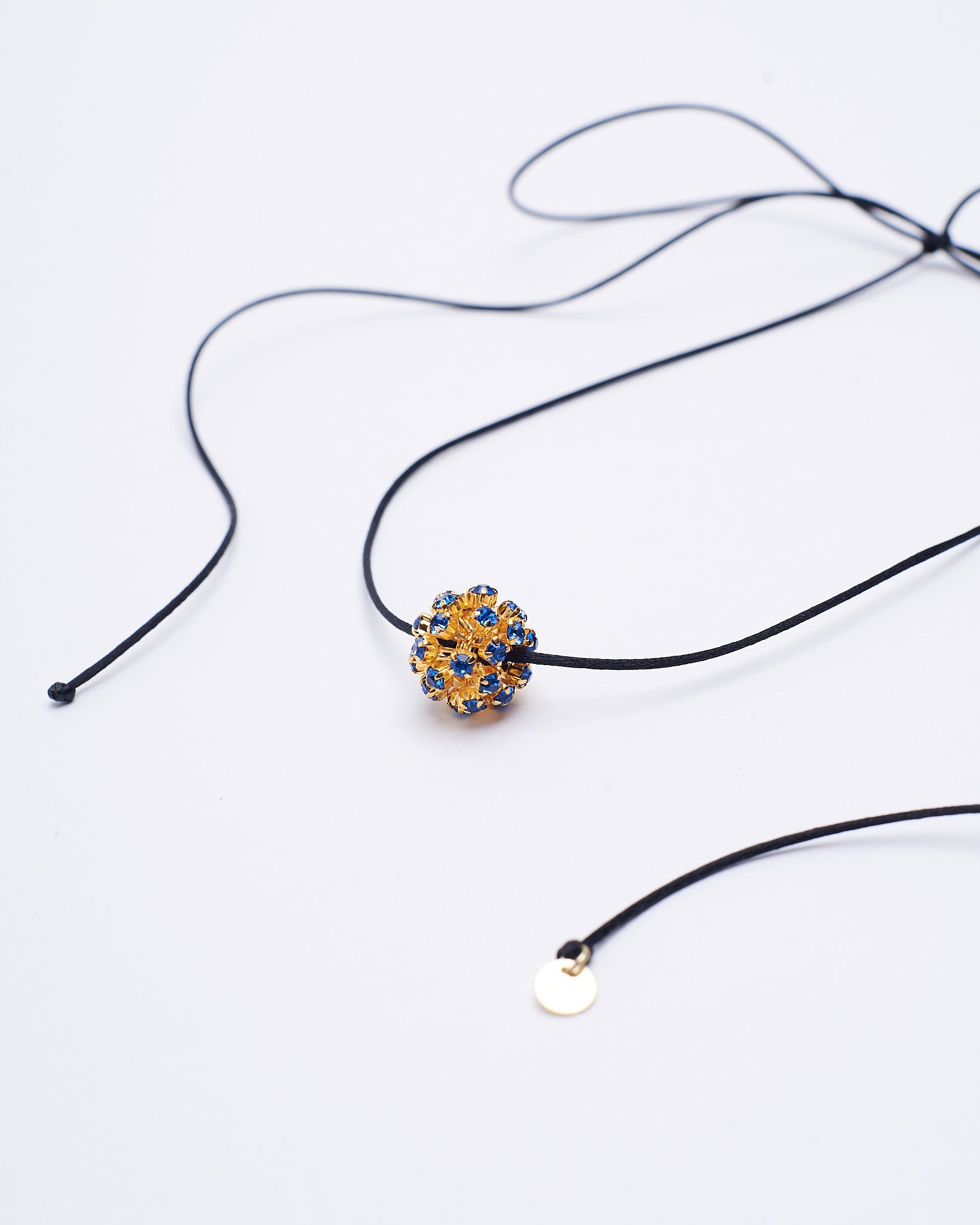 Handmade choker with Swarovski ball and synthetic black thread.