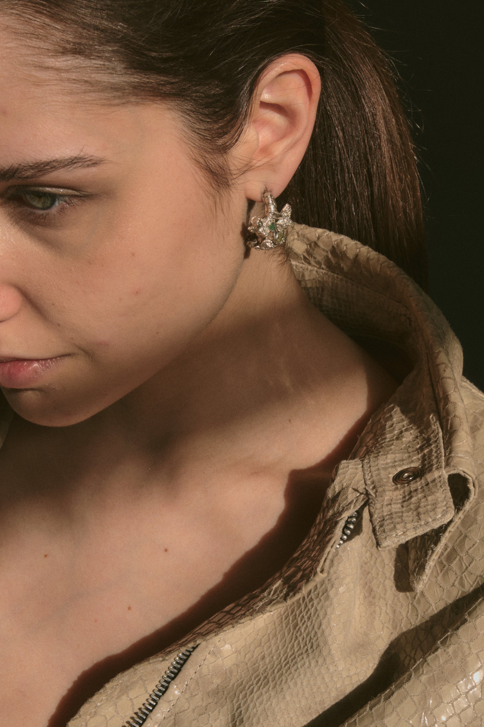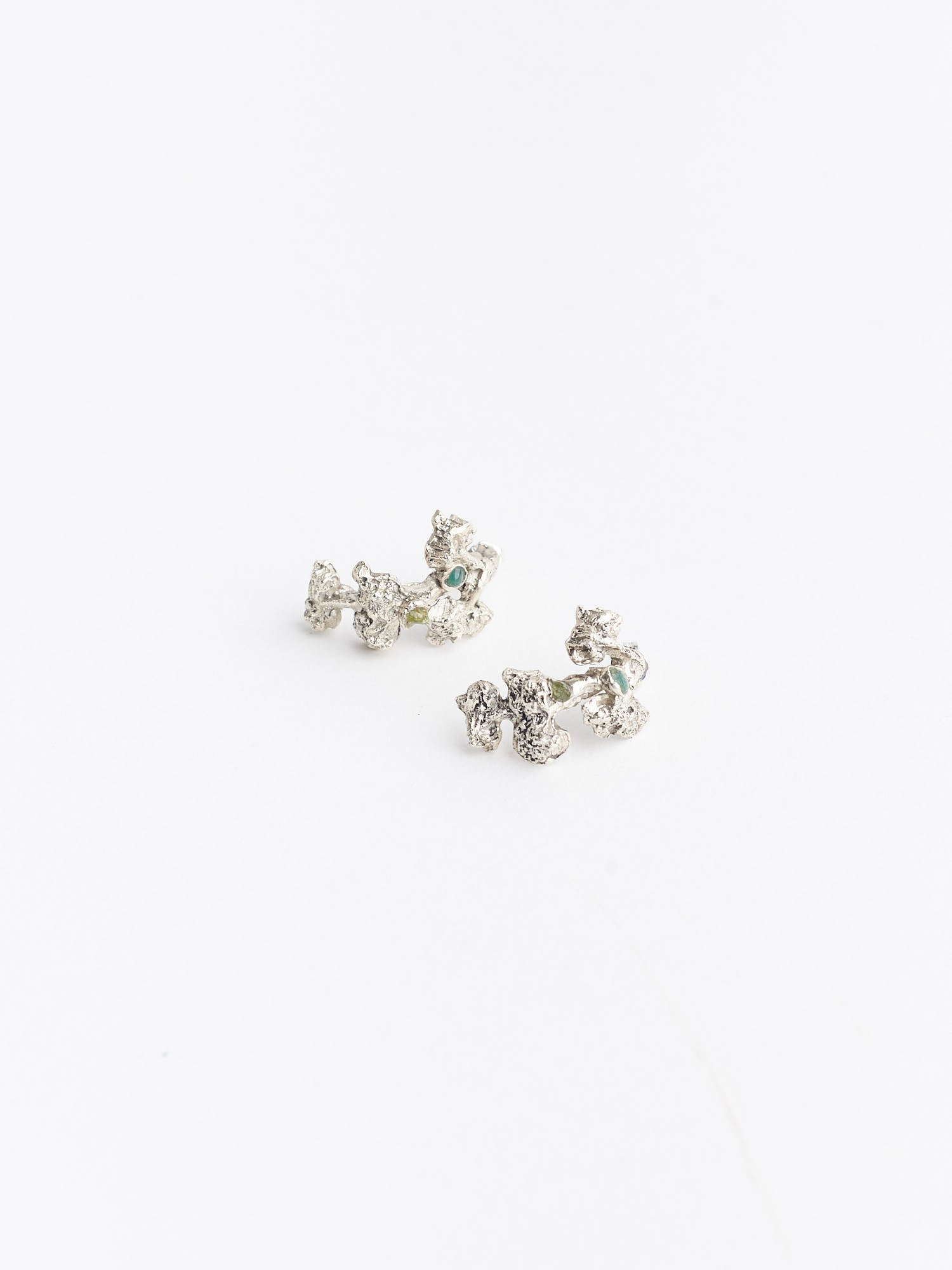 Pair of earrings inspired by a flowering plant with natural inserts of Agate and Olivine