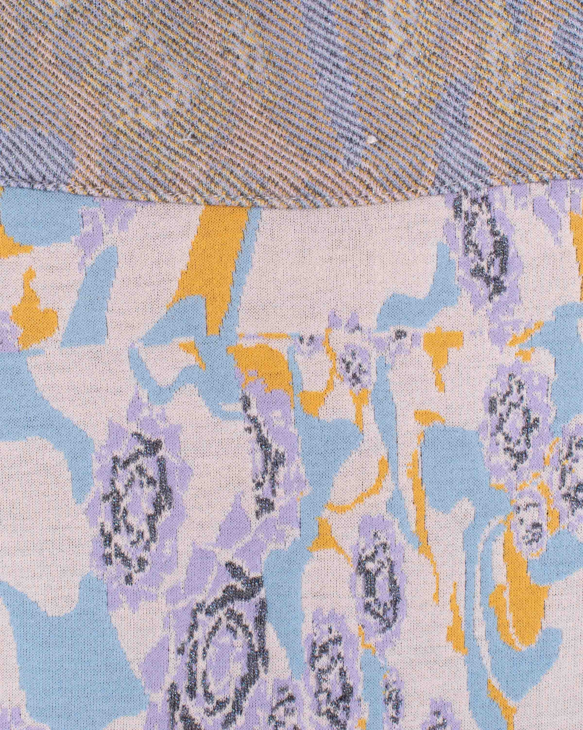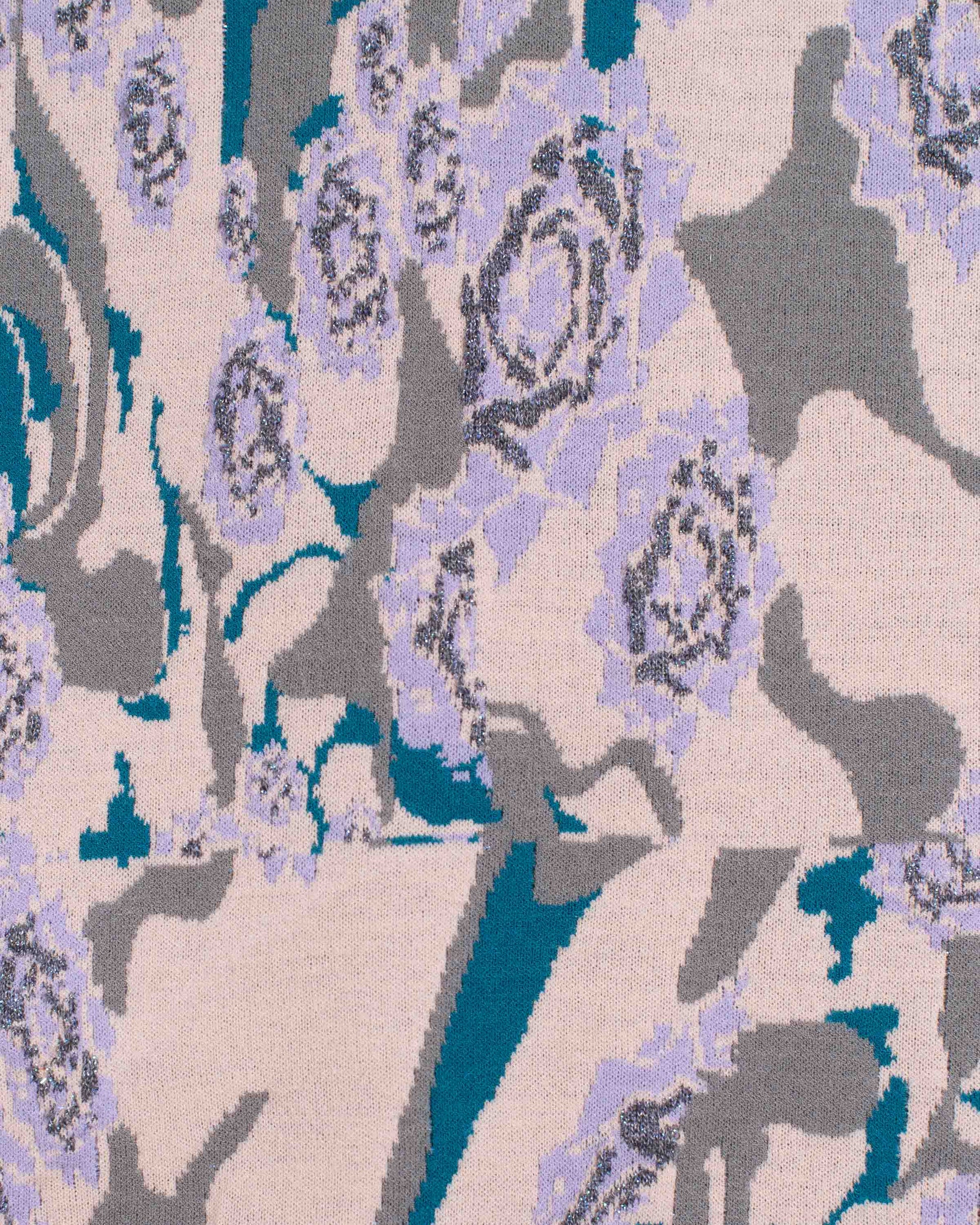 The midi skirt with a fitted silhouette features a contrasting ribbed belt. Details with iridescent decorative thread. Floral fantasy.