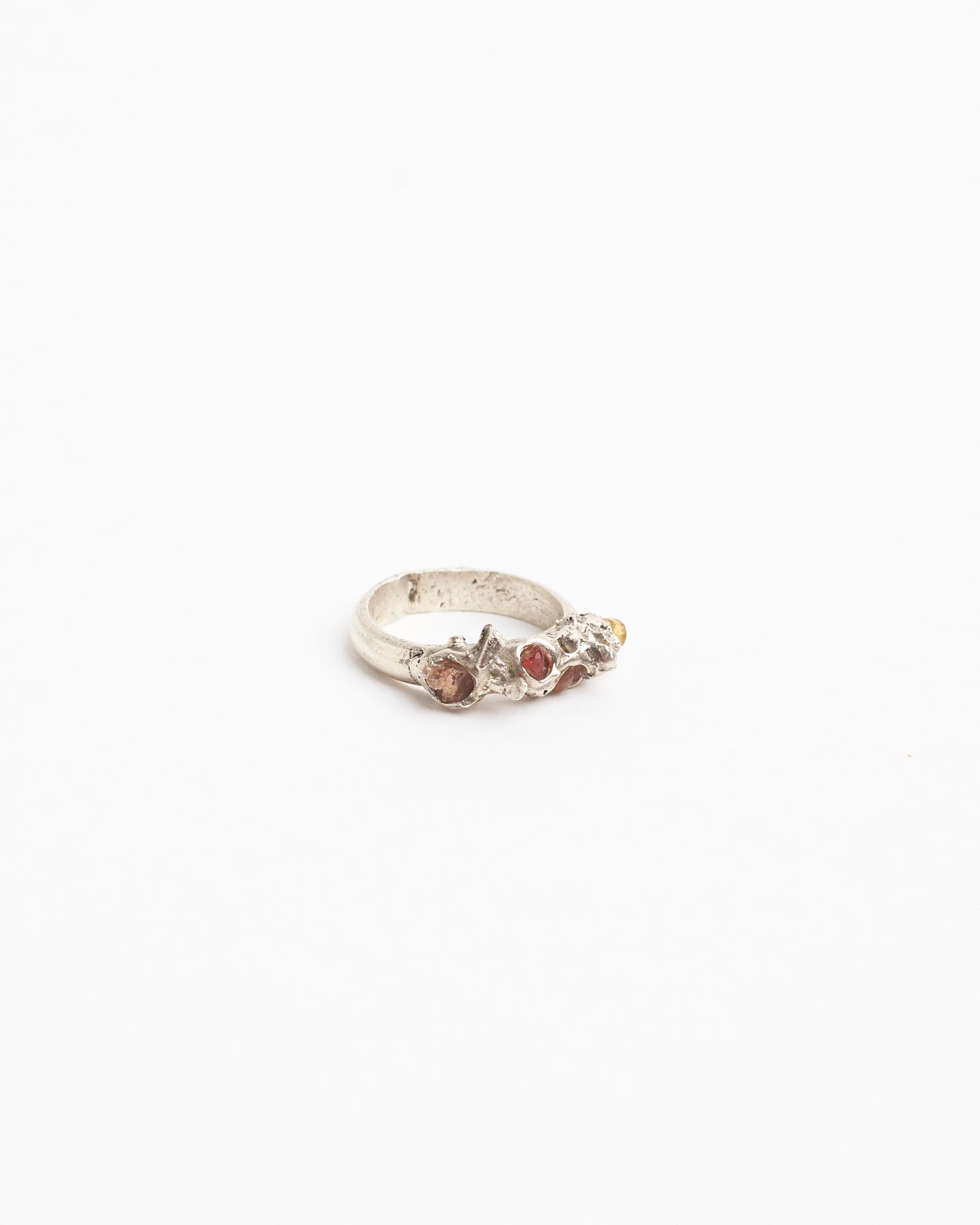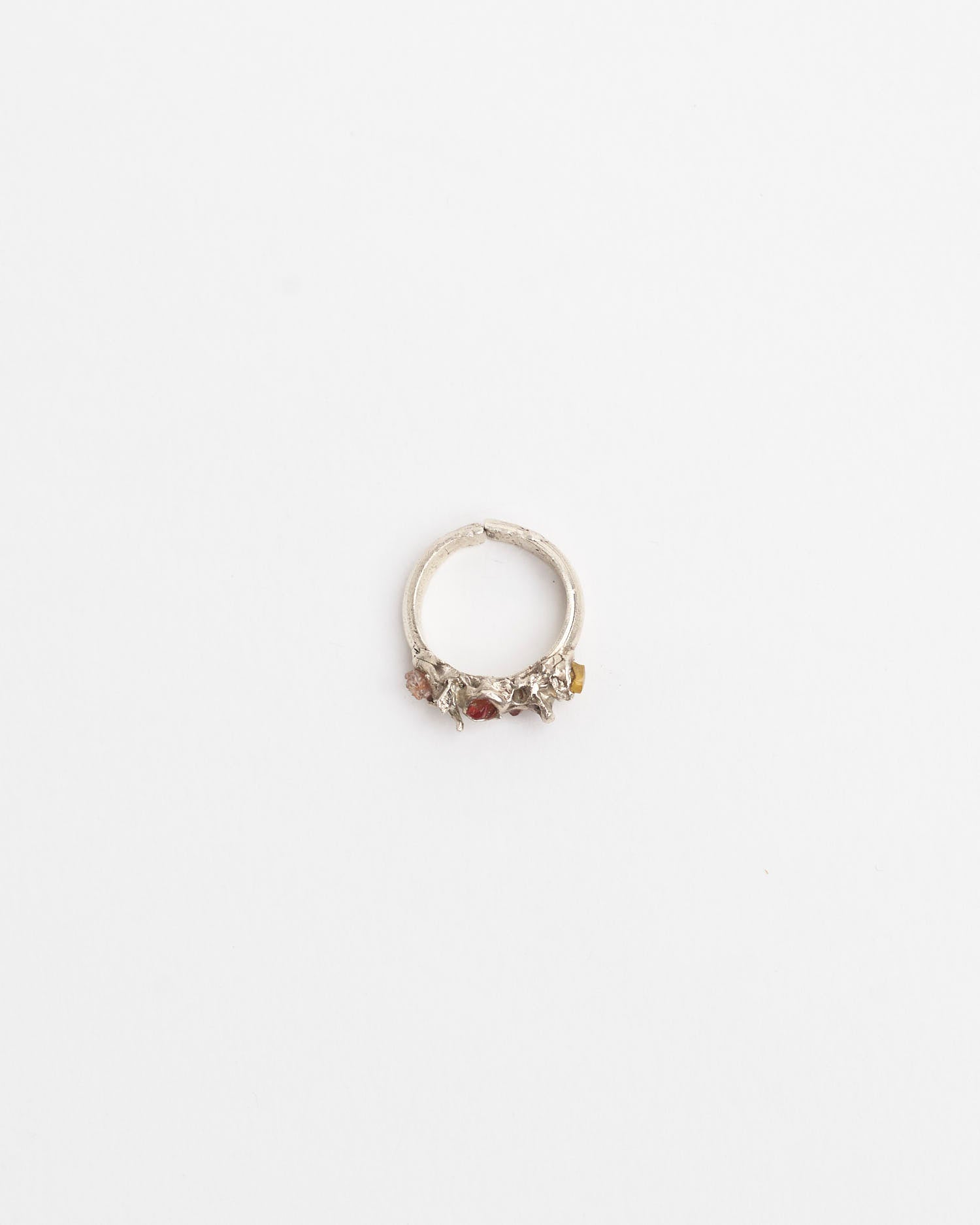 Pair of earrings inspired by a flowering plant with natural inserts of Agate and Olivine