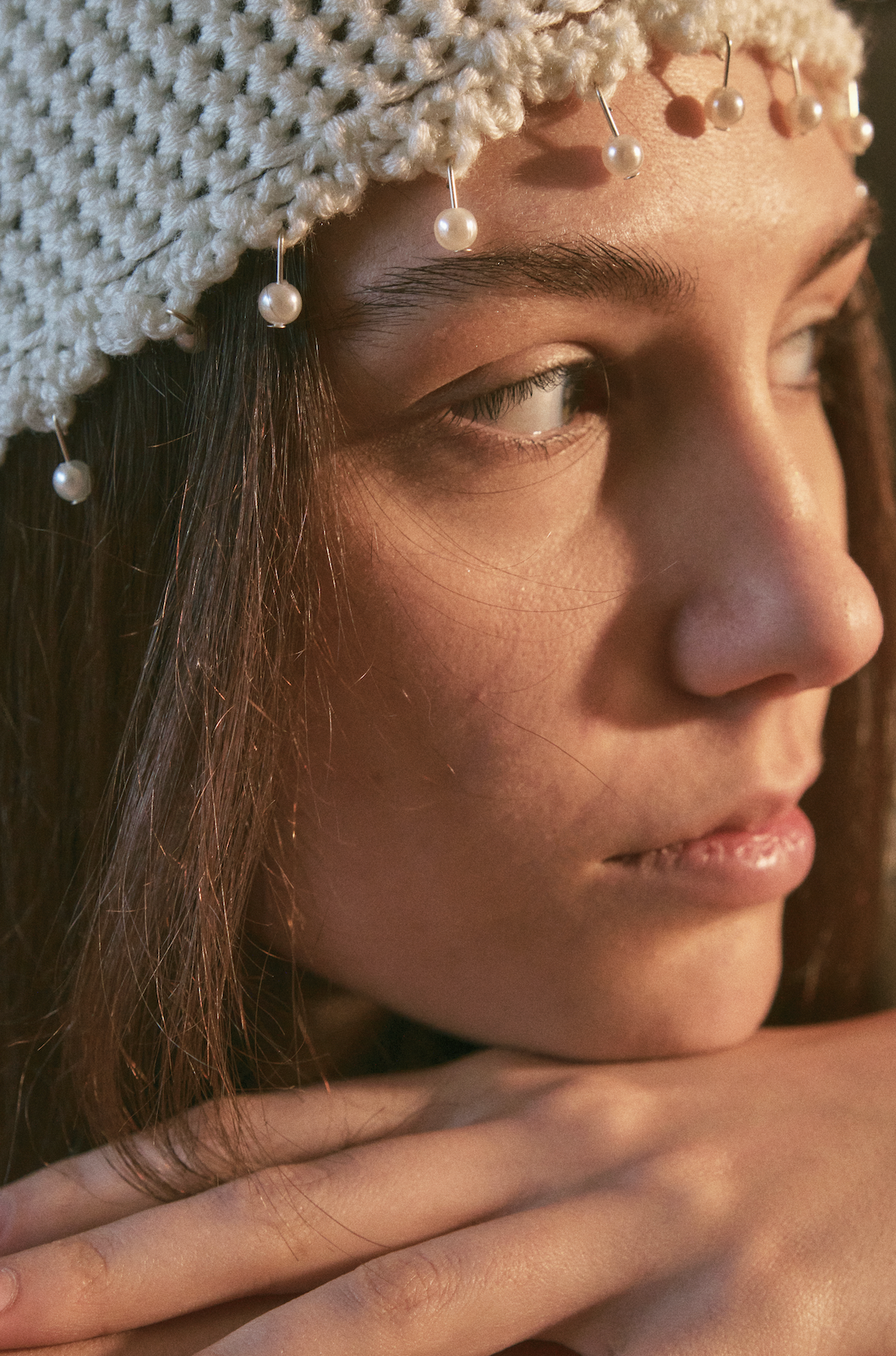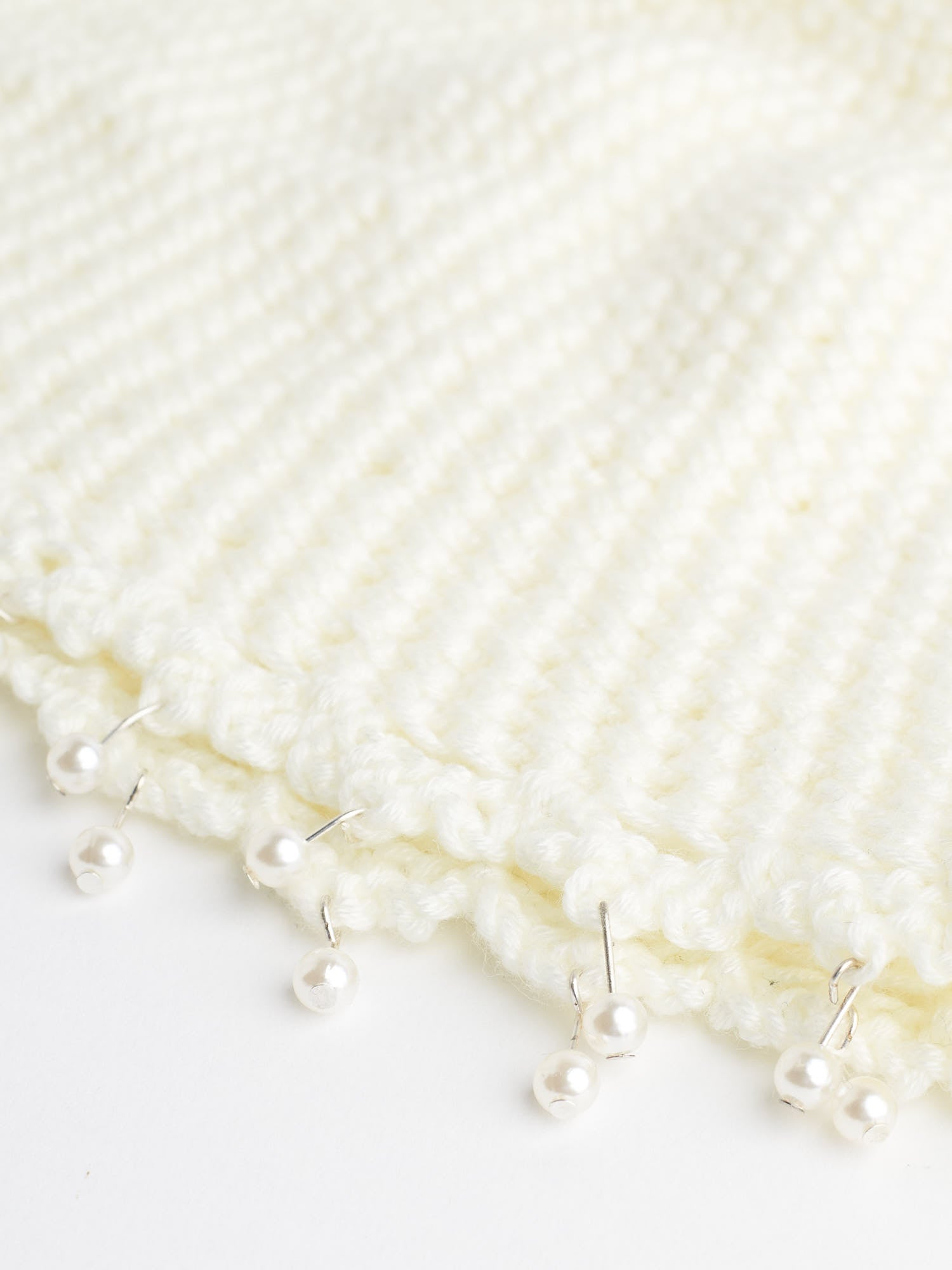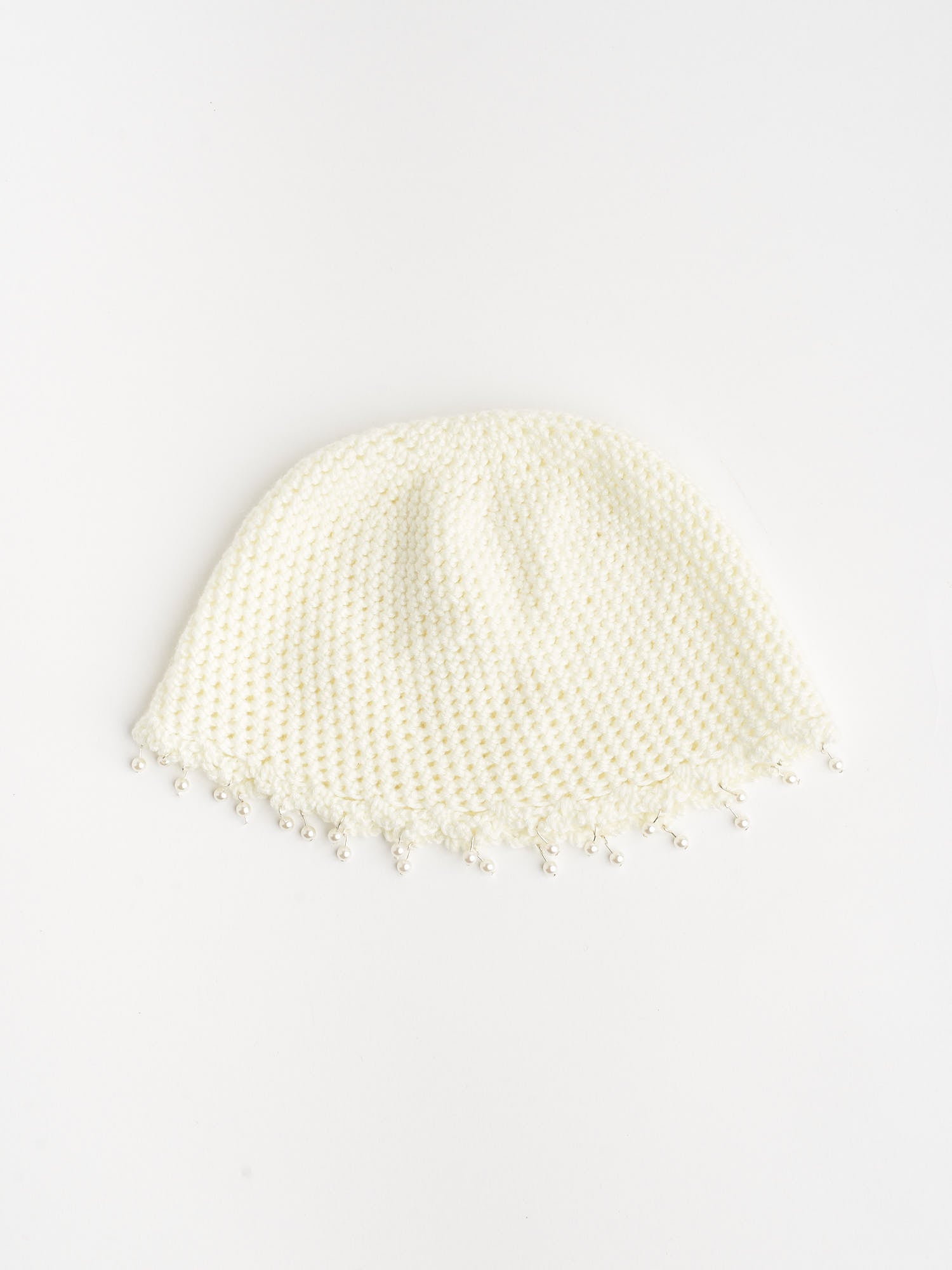 Monochrome hat with beads // 100% soft merino wool, soft semi-perforated crochet workmanship. White beads hanging on the hem