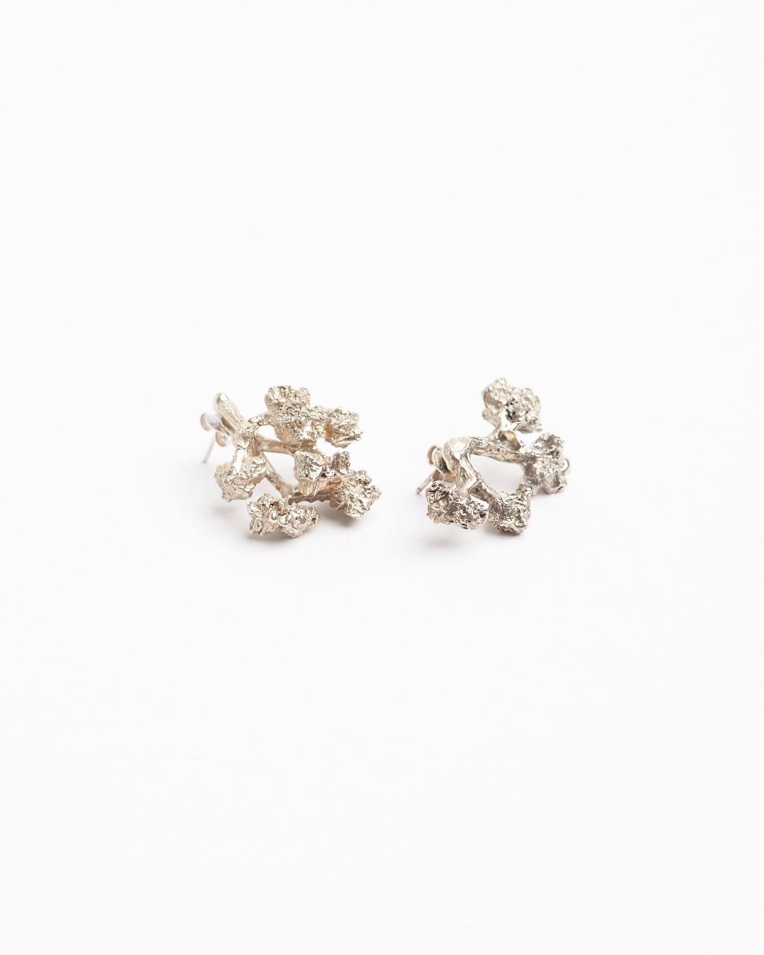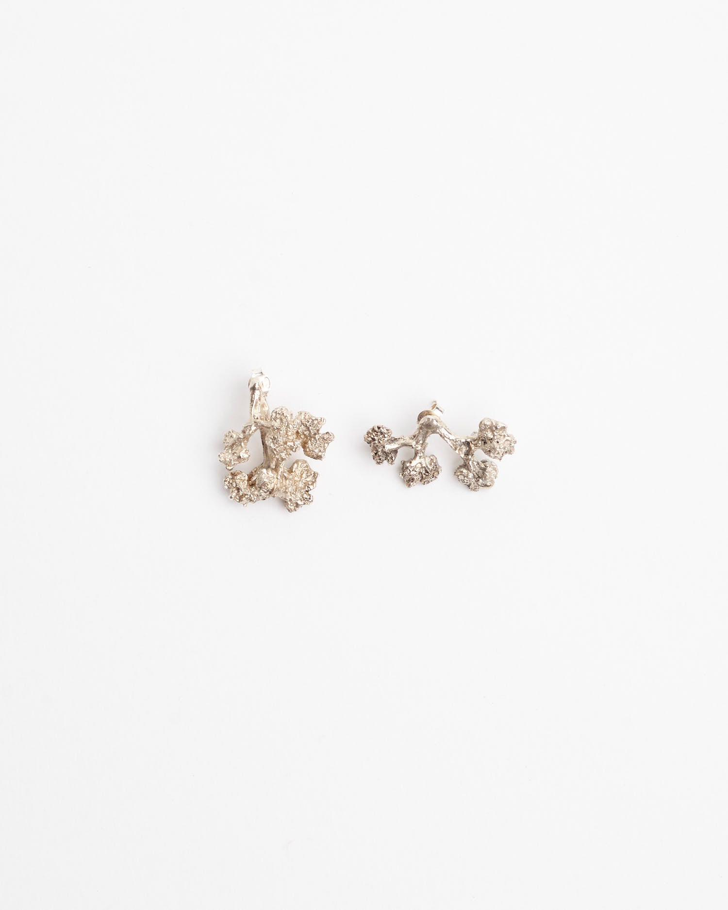 Pair of earrings inspired by a flowering plant with natural inserts of Agate and Olivine