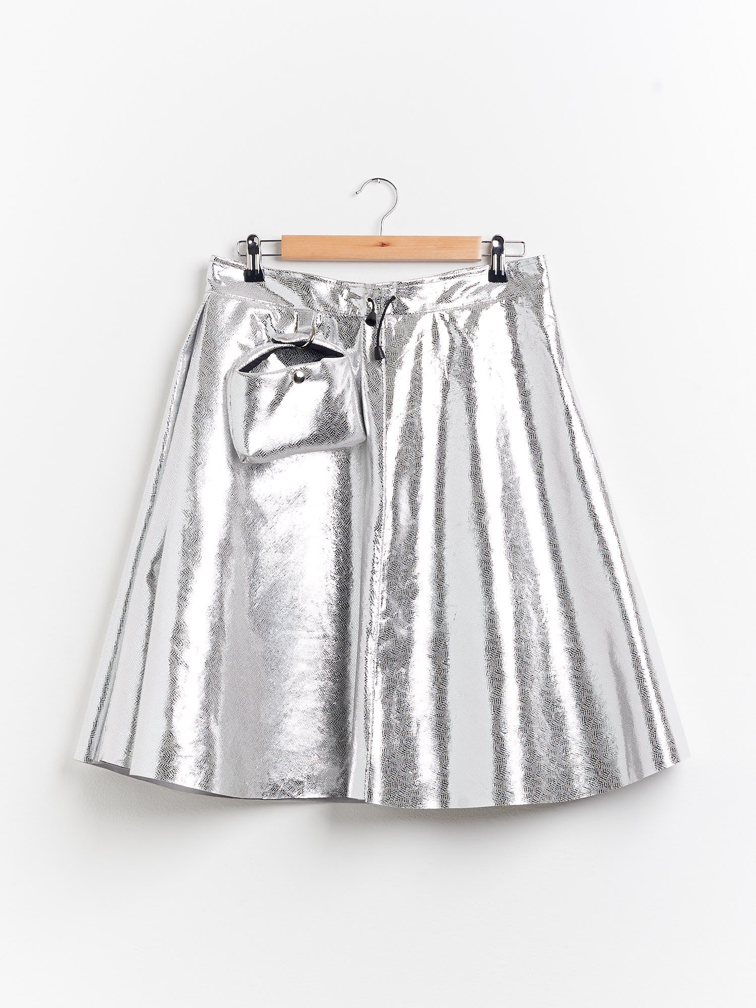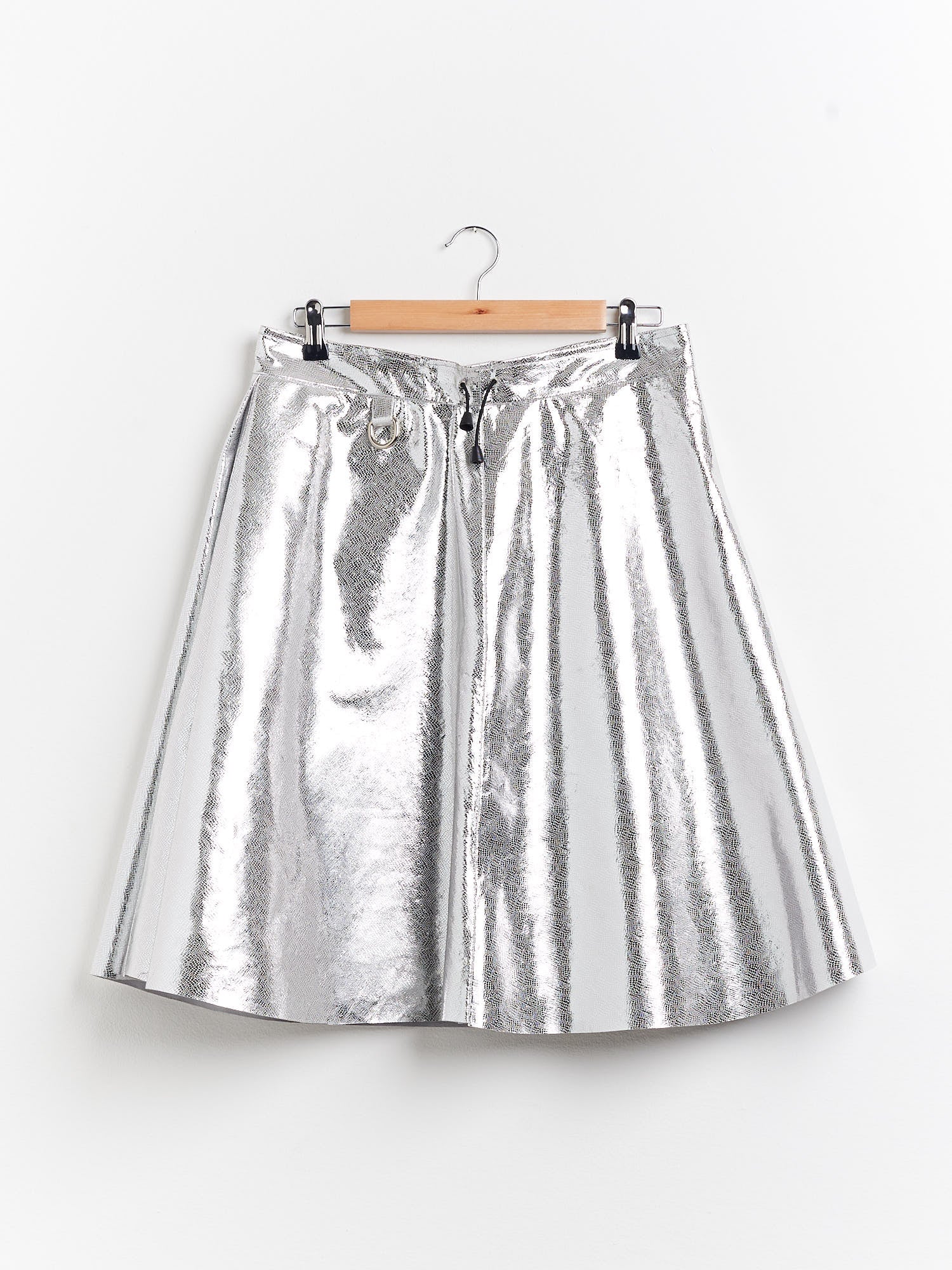 Skirt with internal box pleat. Waistband with drawstring. Recycled leather detail with La Piccola Bag 100% fine leather from waste from Italian companies. Each piece is unique and handmade in Italy.