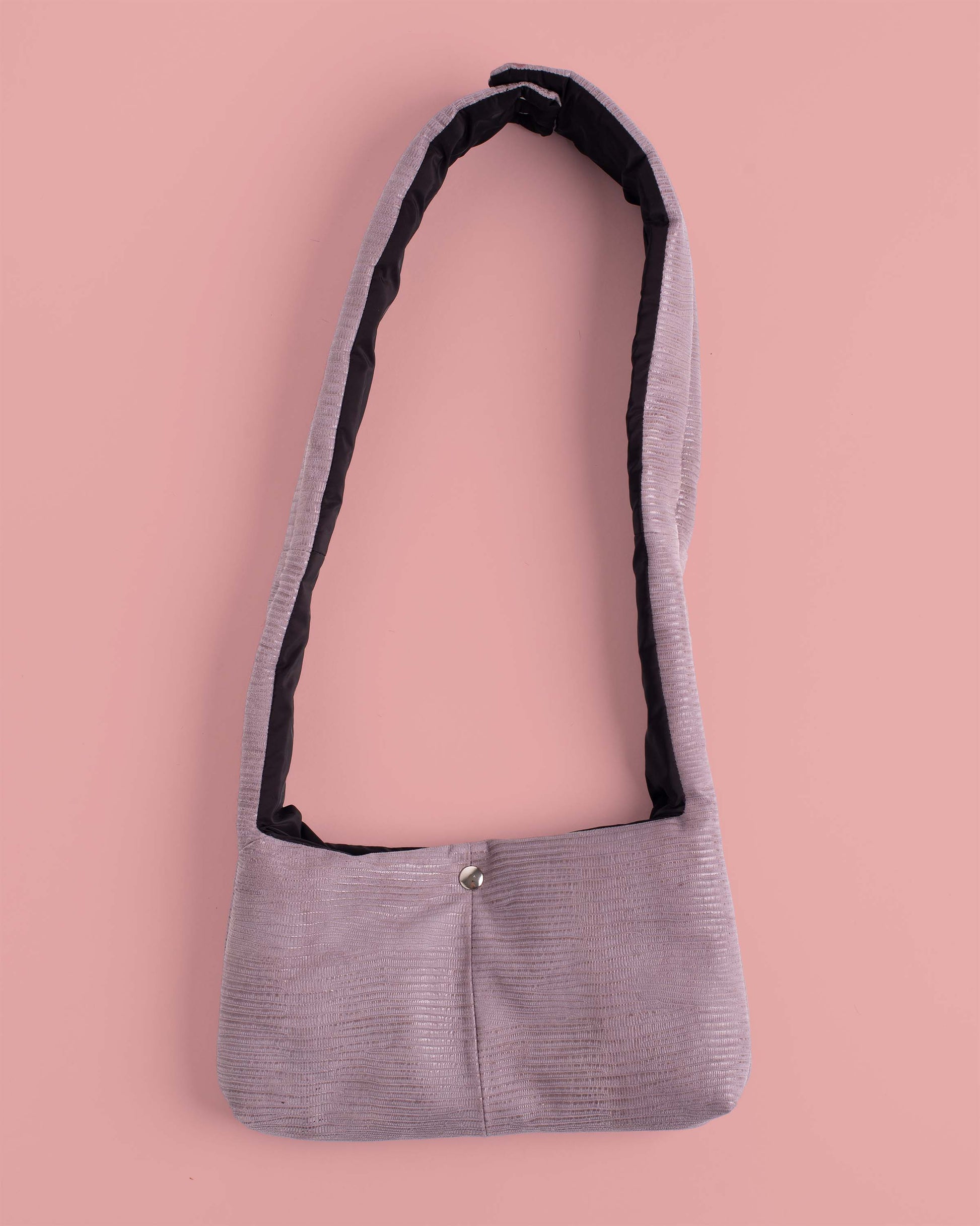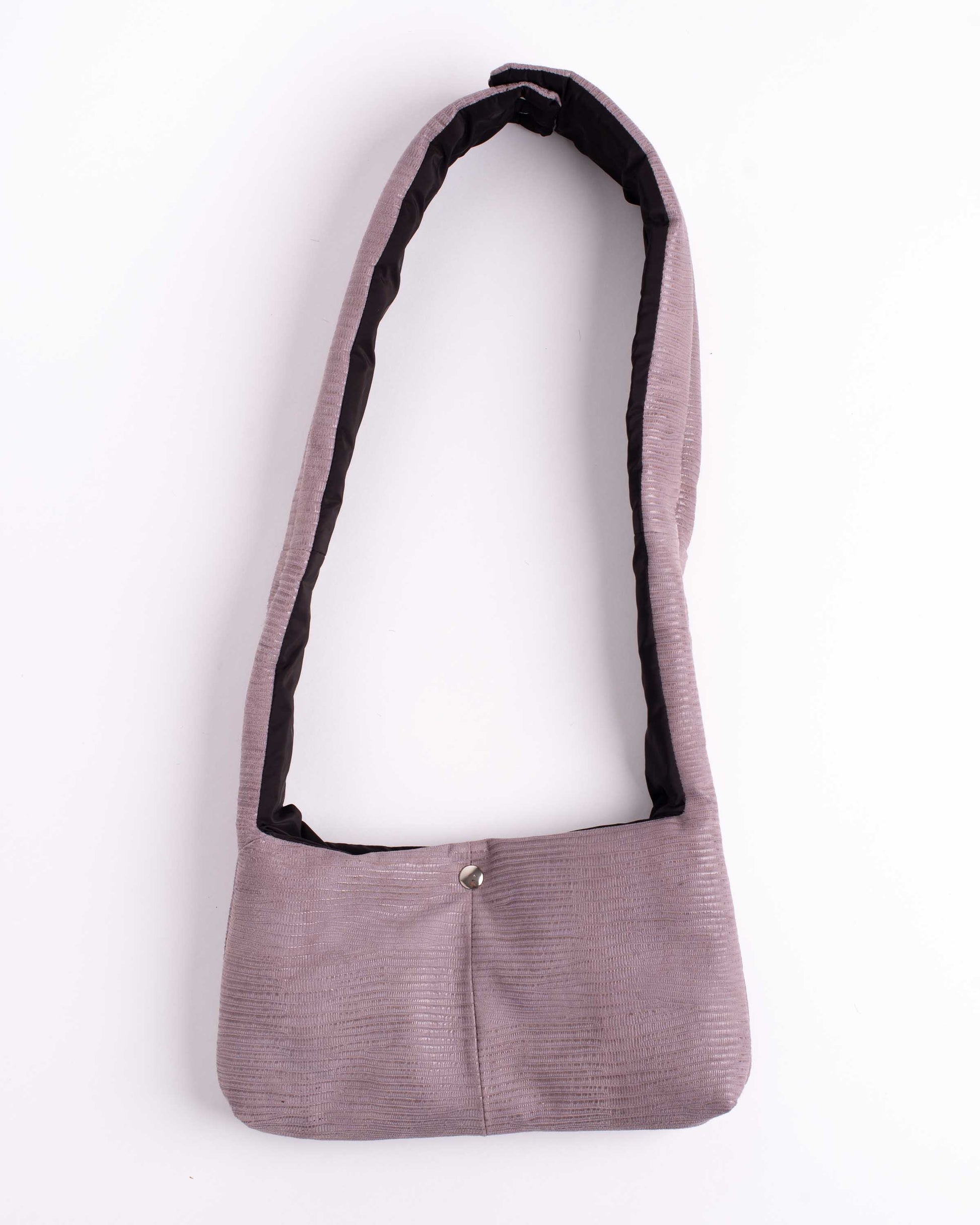 Shoulder bag with metal buttons. Internal lining in nylon, external in 100% fine leather coming from waste from Italian companies. Each piece is unique and handmade in Italy.