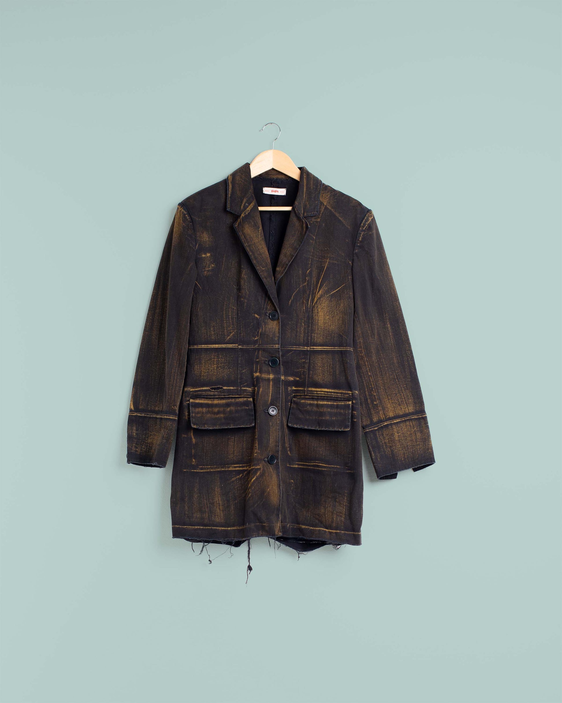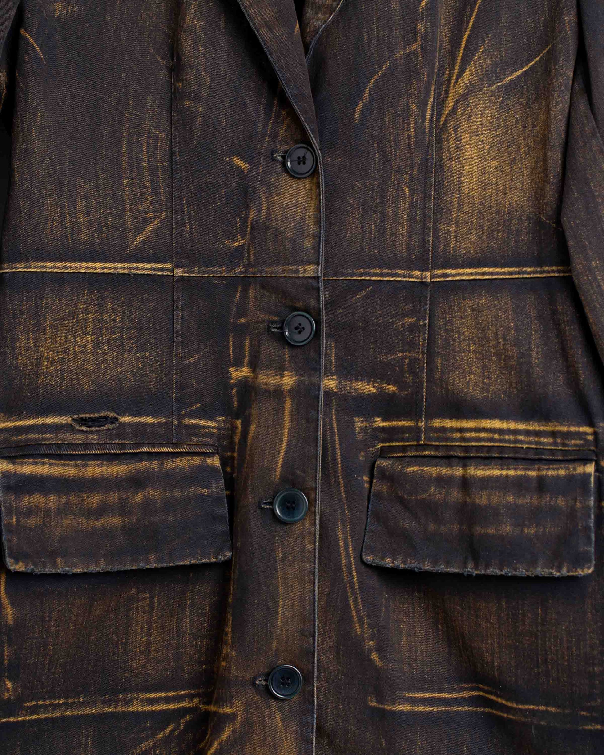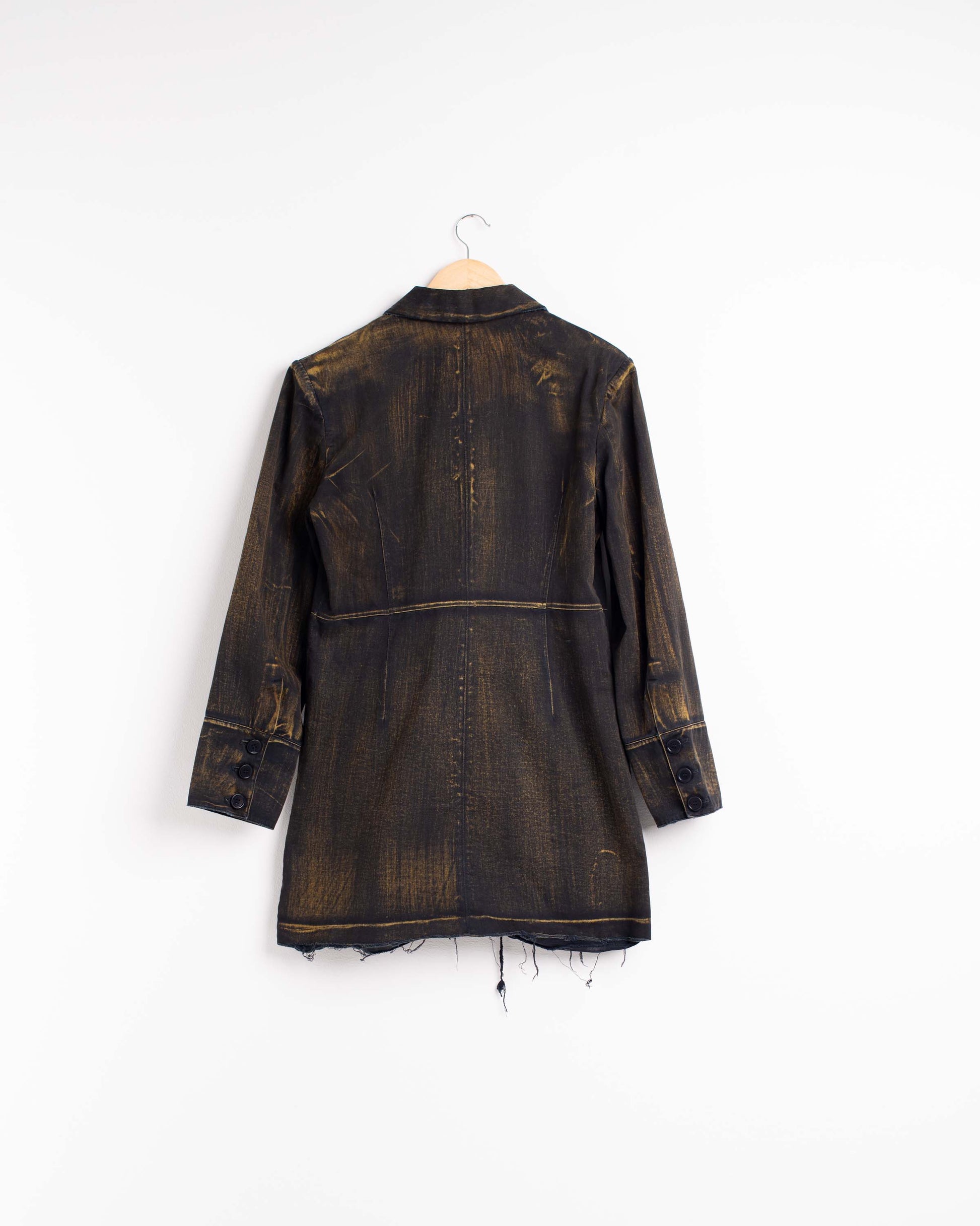 Dress in bleached black cotton made with beige dye. Front button closure. External pockets. Above-the-knee length and relaxed silhouette. Raised shoulder shape.