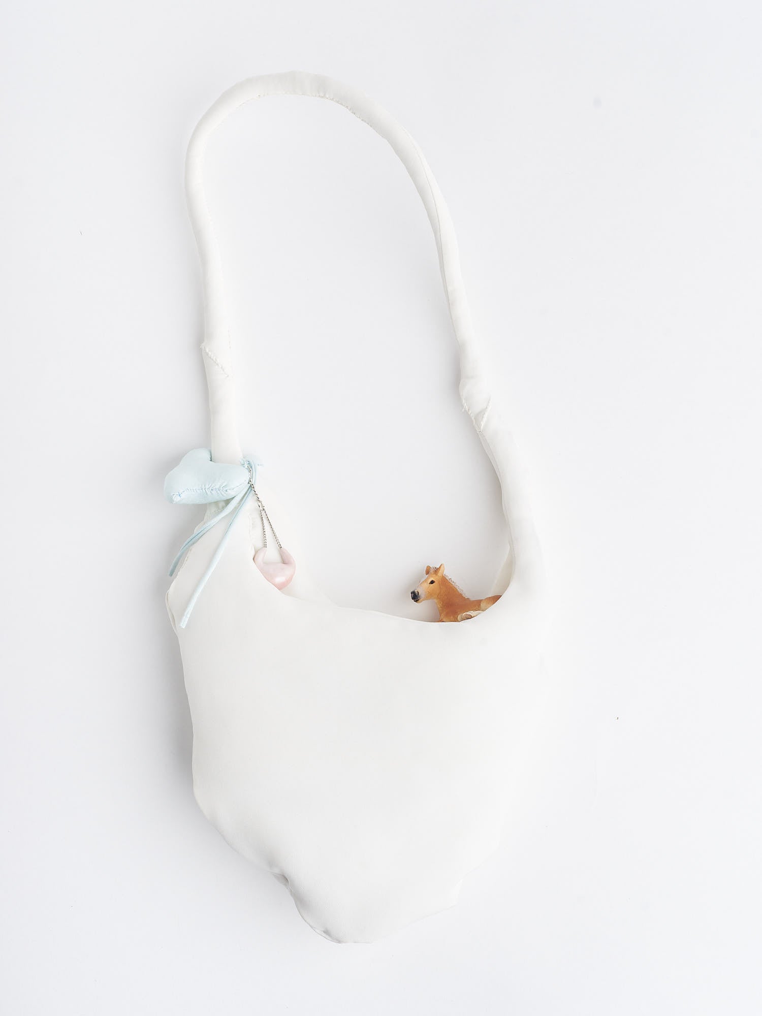 Shoulder bag made with polyester cotton blend parachute fabric, with crease-resistant cotton inside. Horse head detail set inside the handle. Handmade in silicone print. 50x25 cm.