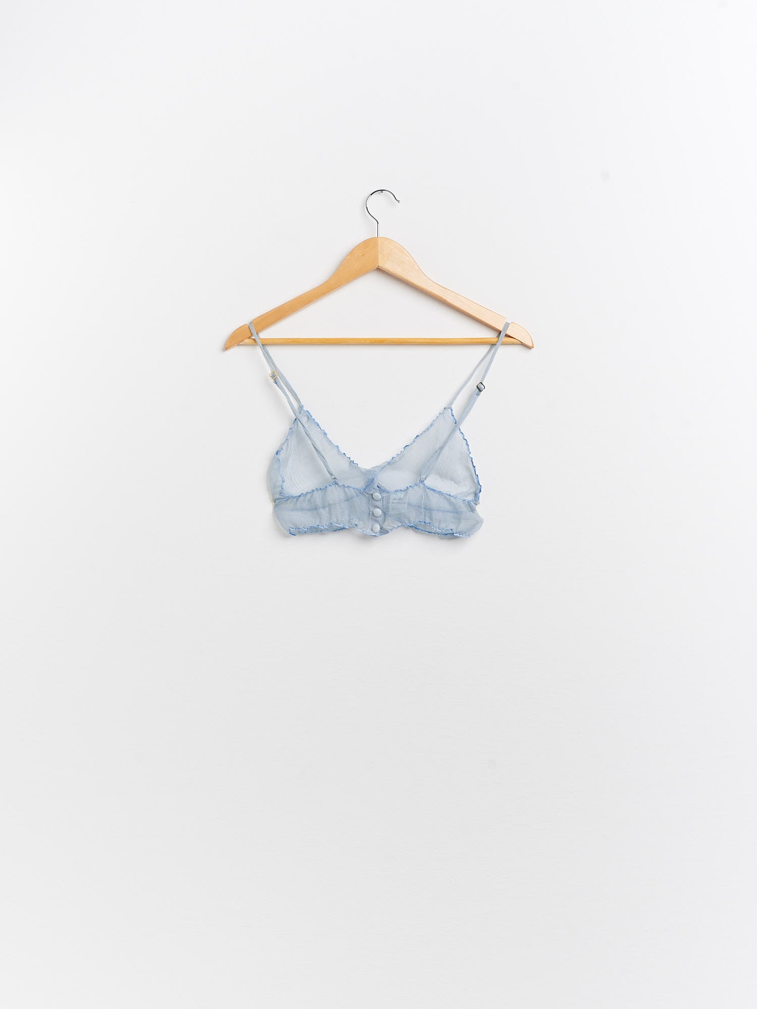 Bralette in seta. Lavare solo a mano, non usare candeggina, non lavare a secco con vapore al minimo. Temperatura da 3 a 6 cm di distanza dall'indumento.