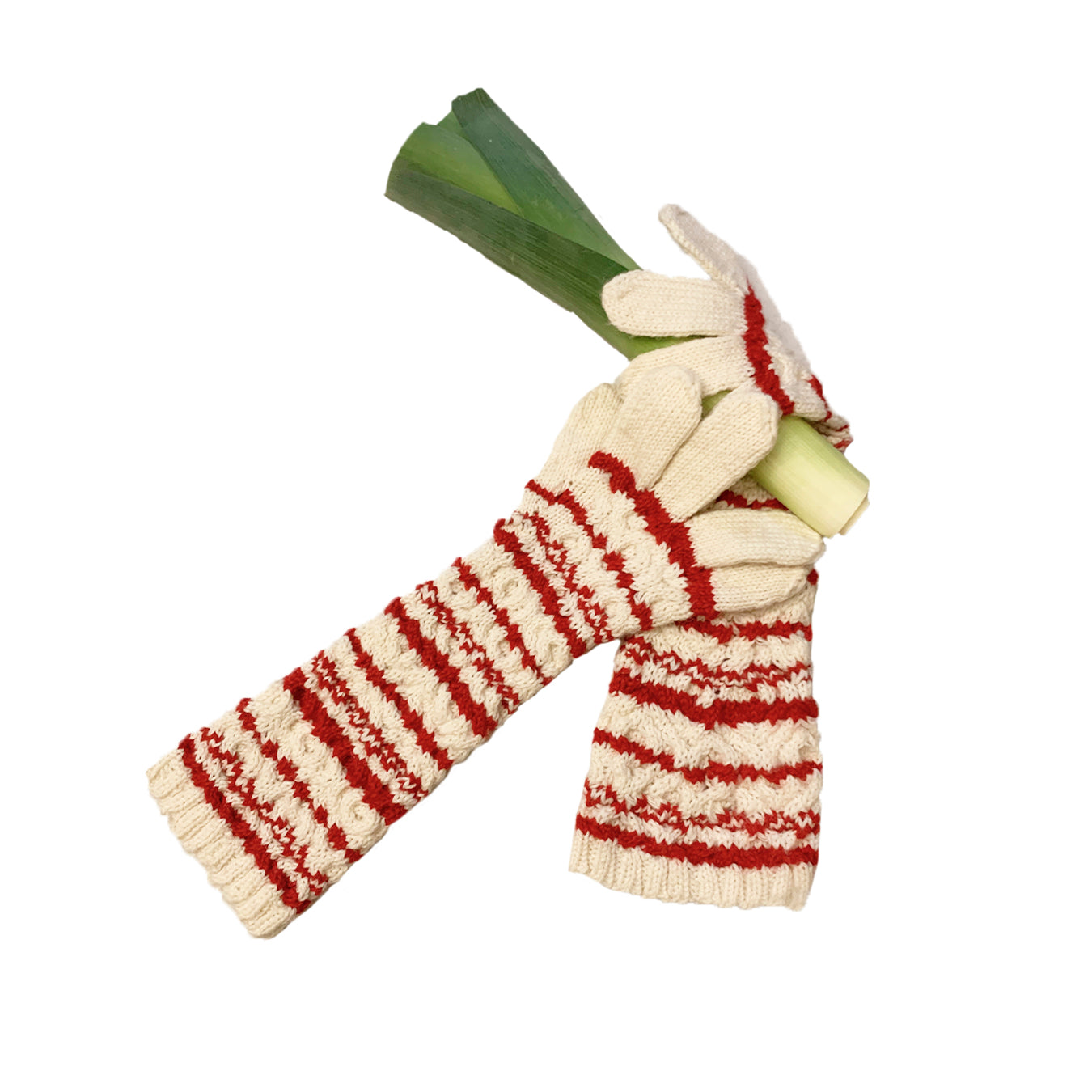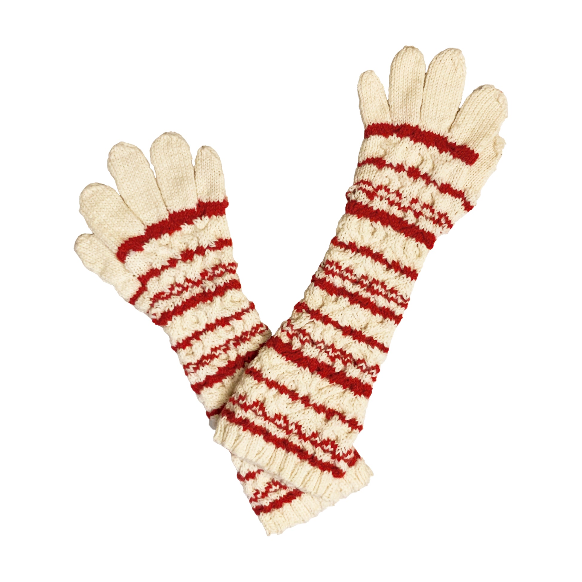 Guanti realizzati a mano in 100% lana con apertura al polso. Solo lavaggio a secco. Taglia unica.