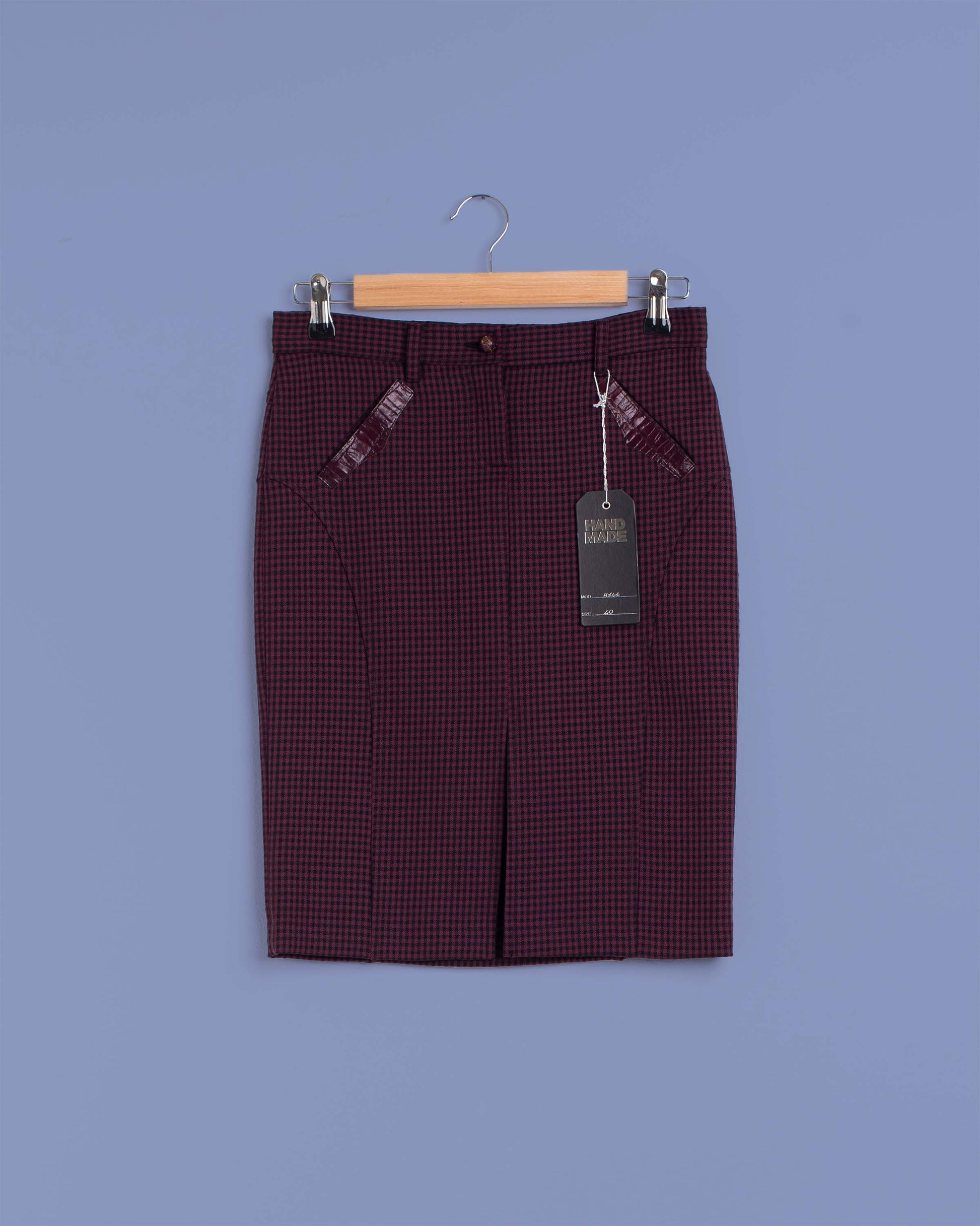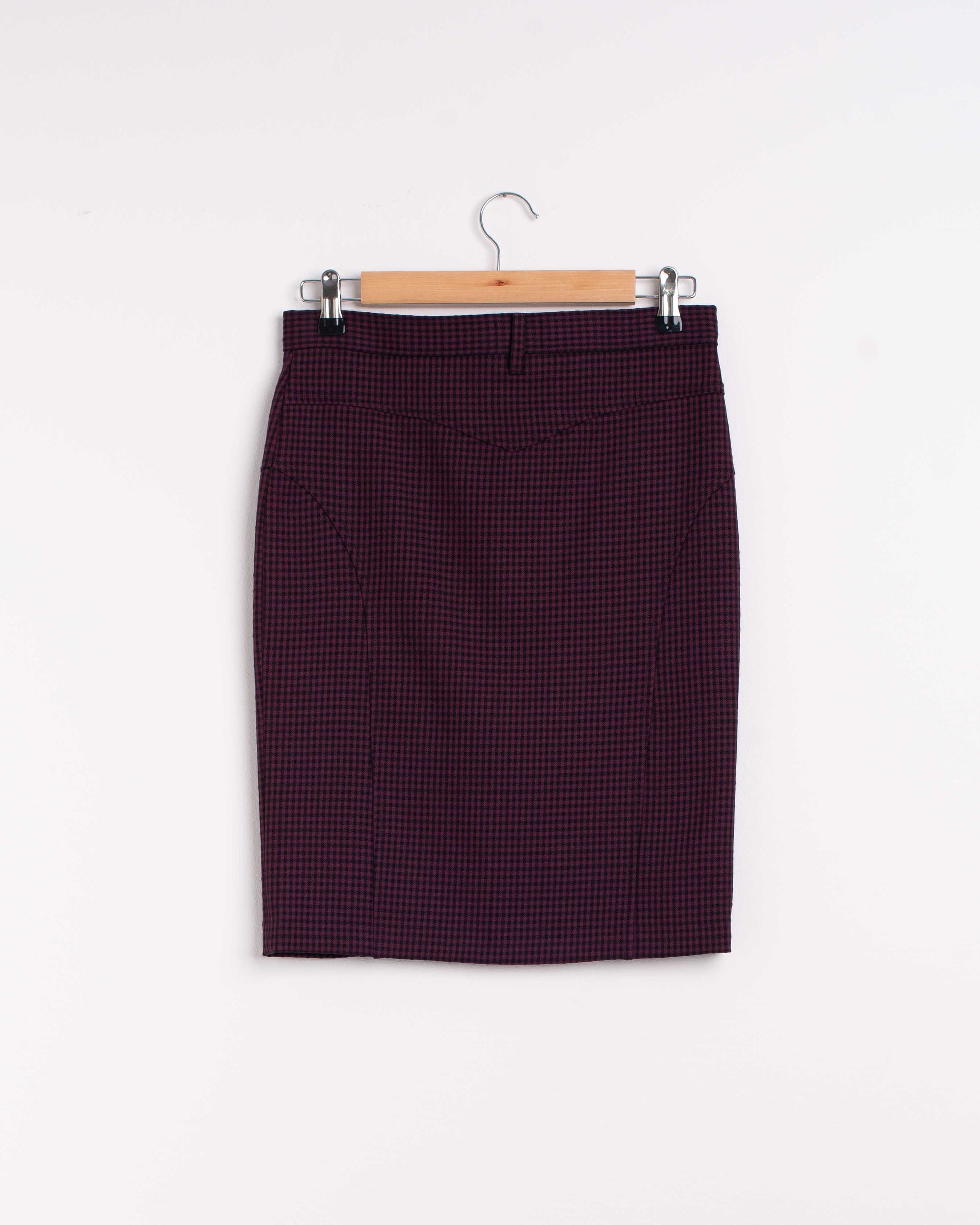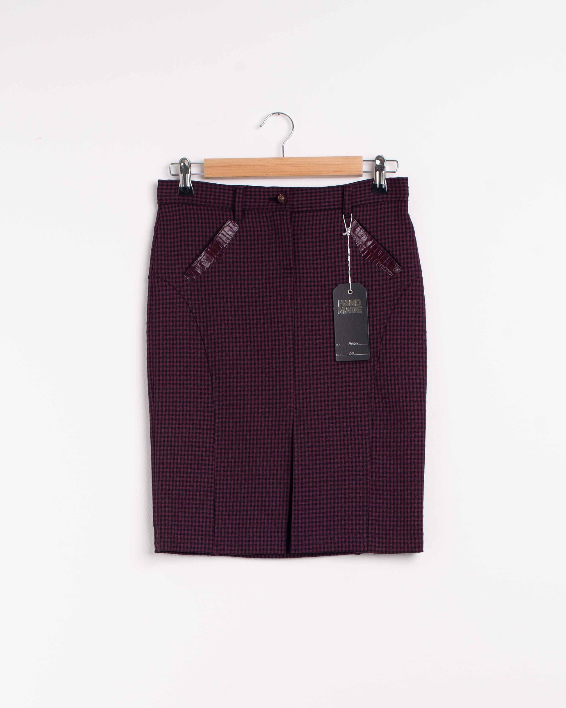 Gonna vintage a tubino a scacchi prugna e nera made in Italy