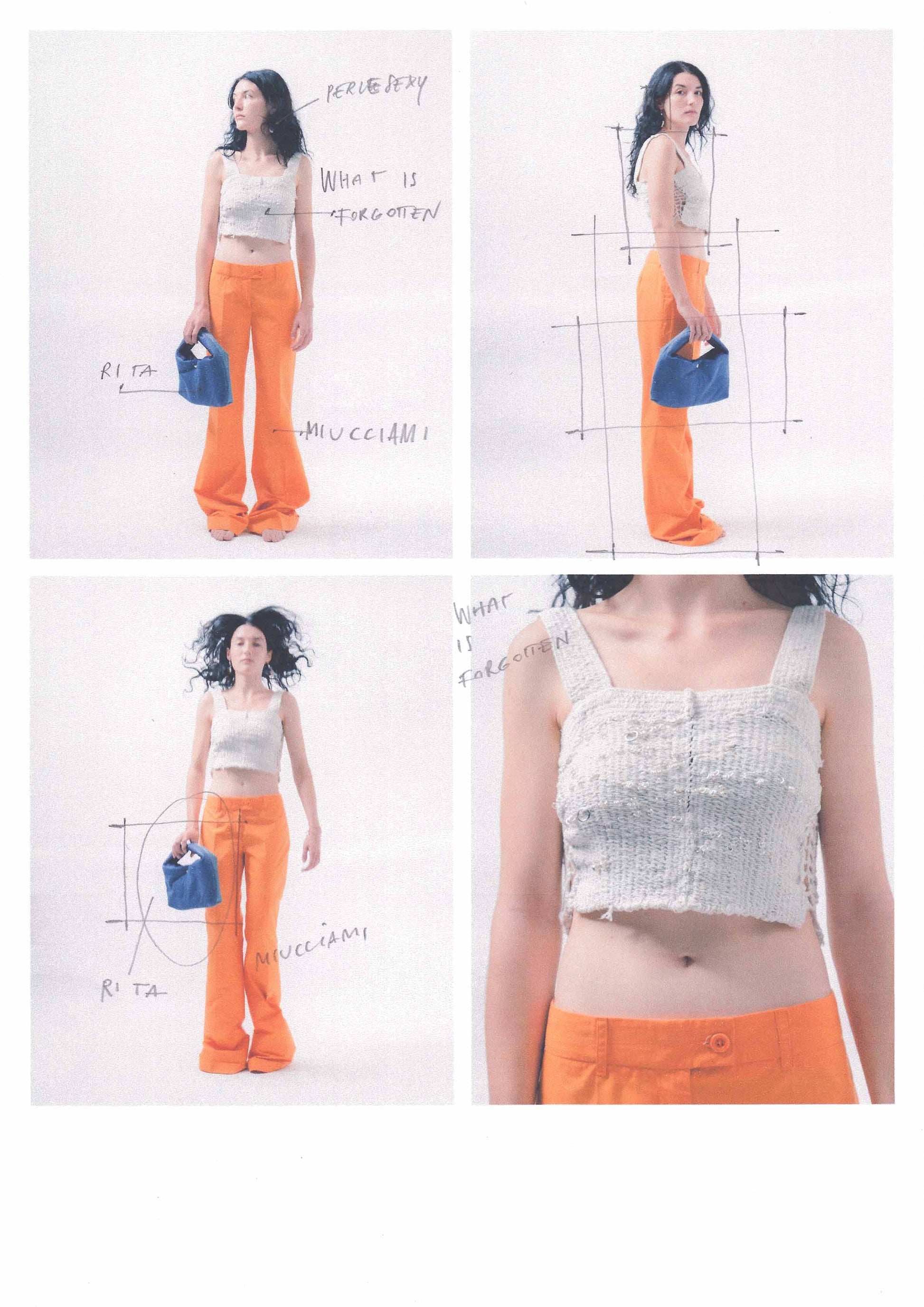 Durante la tessitura del top vengono inserite alcune applicazioni tipo piercing.