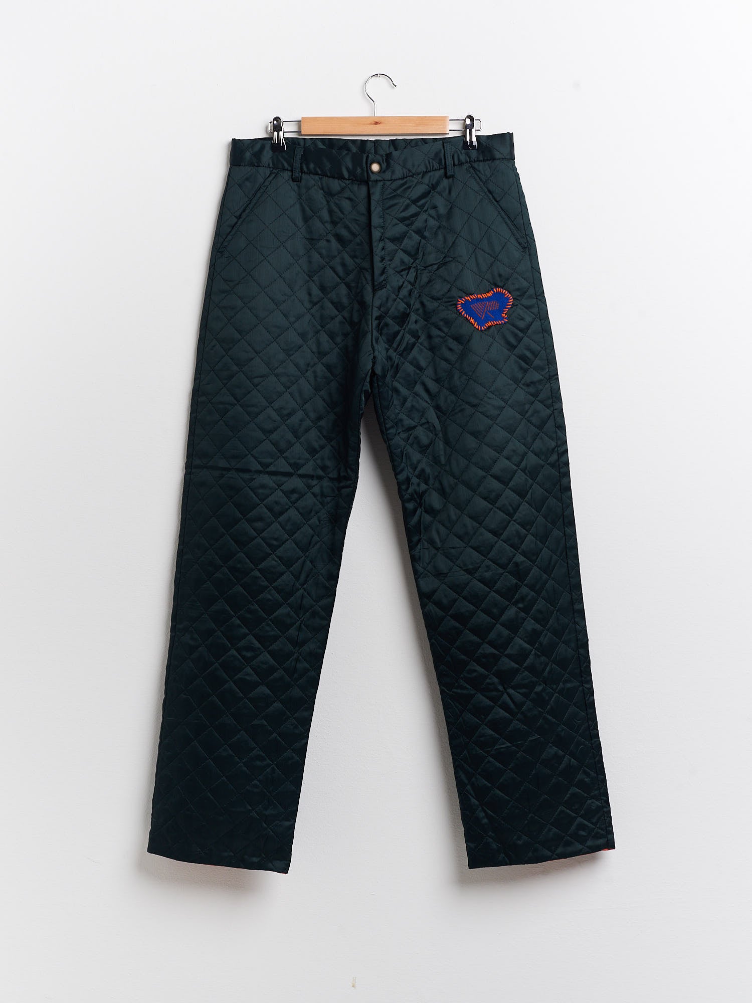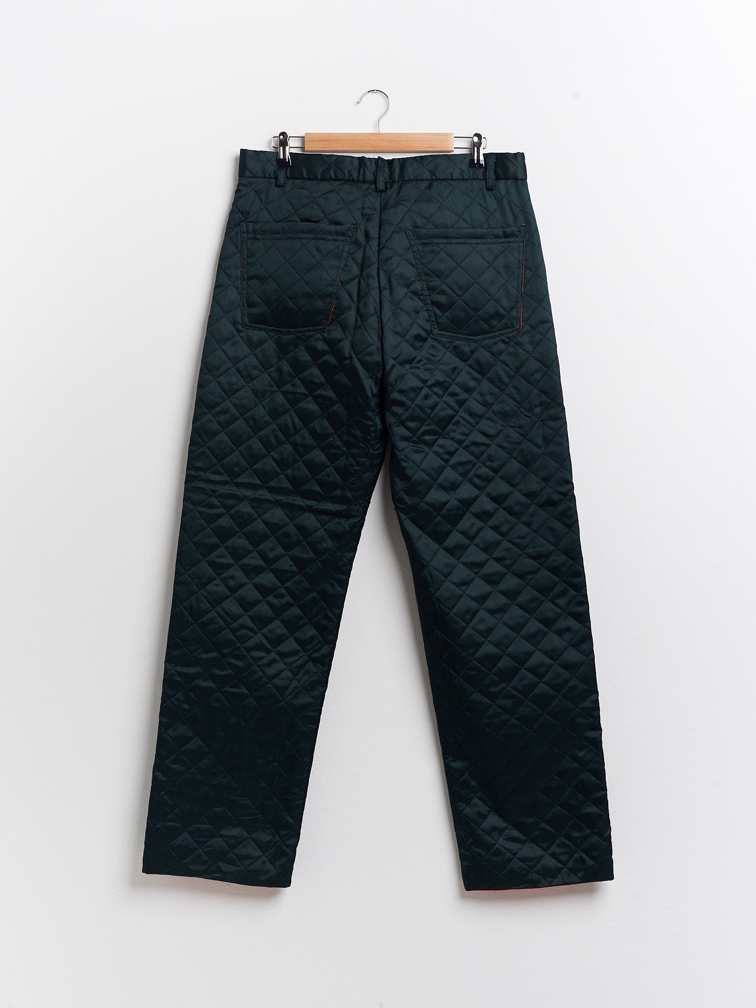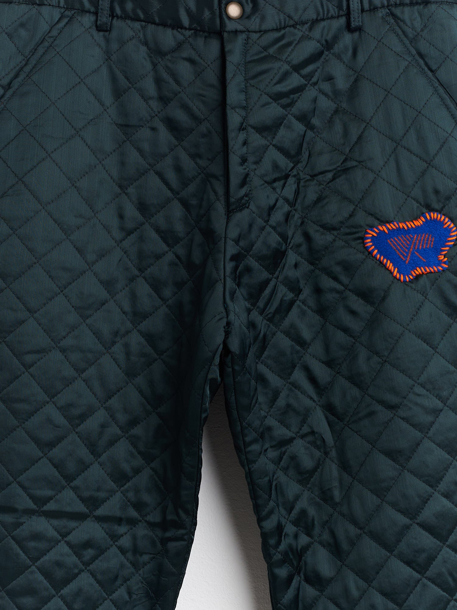 Comodo pantalone trapuntato con pratiche tasche e passanti per cintura.