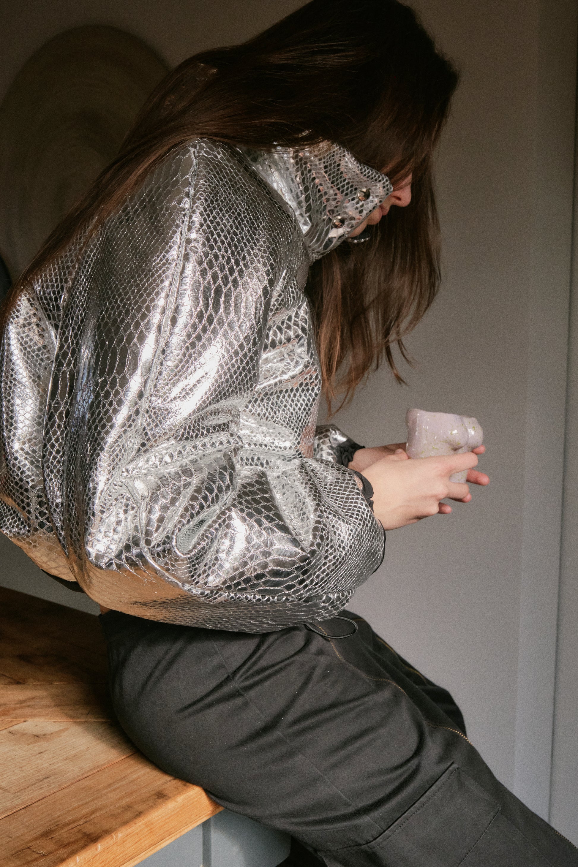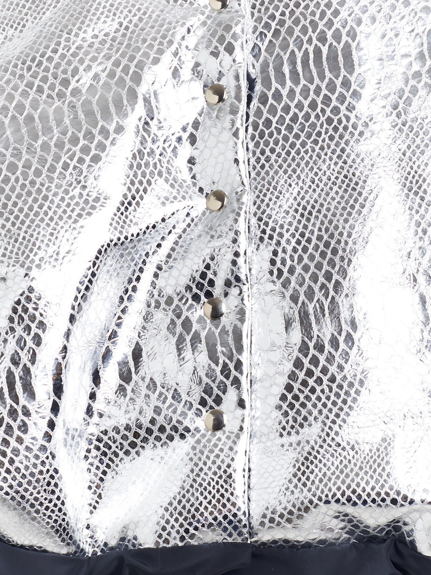 Piumino dalla silhouette squadrata. Chiusura con bottoni in metallo. Orlo e polsini con coulisse. Tasca interna. Maniche raglan. Pelli pregiate al 100% provenienti da scarti di aziende italiane. Ogni pezzo è unico e realizzato a mano in Italia.