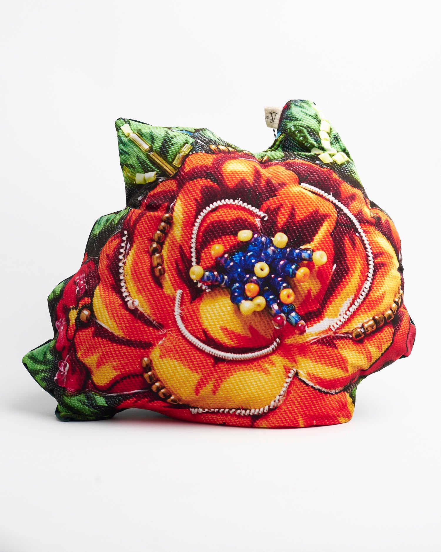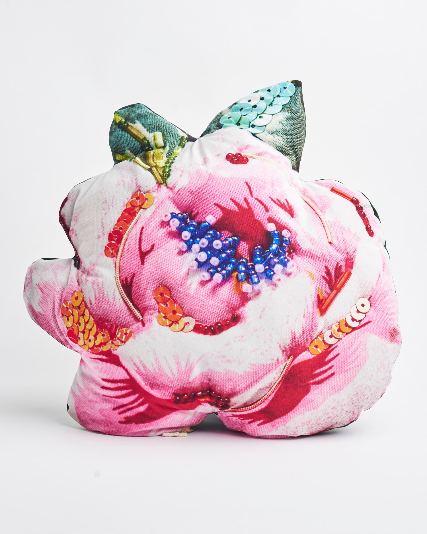 Cuscino in velluto verde caratterizzato da una stampa con rosa turkmena sulla parte superiore. Morbido e confortevole adatto anche come decoro per il proprio letto/divano. Disponibile in due varianti colore.